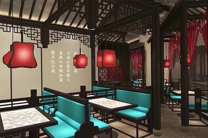 確定了平面布局之后,再進行效果圖的作業(yè),也就是將餐廳的地面,頂飾,墻面,隔斷,進行藝術化設計,圍繞品牌主題,形成系統(tǒng)的形象體系和商業(yè)美學。最終用詳細的施工圖將此效果完美表現(xiàn)出來,經過嚴密的施工,效果完美落地。