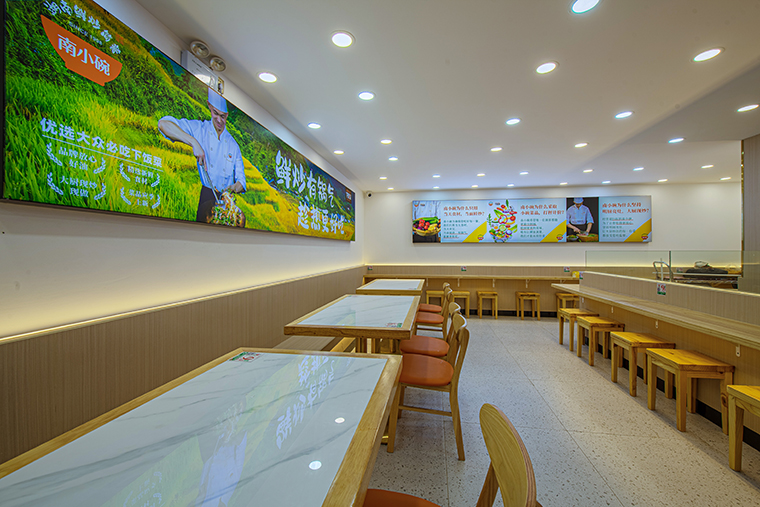 通過圍繞新鮮現炒,南小碗鍋氣鮮炒金牌五星標準,新鮮食材等核心賣點。大量使用軟膜燈箱,精心設計的畫面,不斷強化南小碗味道好的特點,讓顧客在用餐之時,不知不覺中記住了南小碗品牌,記住了我們的核心“鮮炒有鍋氣,趁熱更好吃”的產品賣點。實現了潤物細無聲的廣告傳達目的。