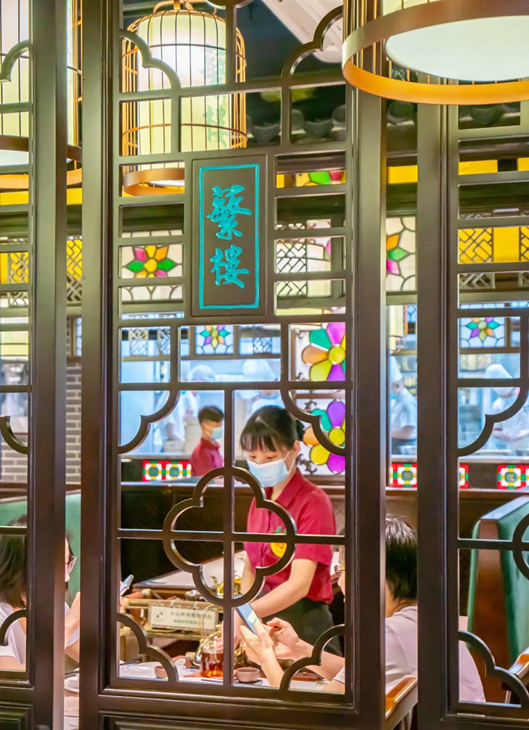 比如品深餐飲全案策劃設計的蘩樓廣式點心茶樓,其中聯合創始人之一的黃師傅是經過數代傳承的廣式點心大師傅。做點心的技術非常出色,對整個后廚的管理與供應鏈的把控都領先同行,這就是他的核心優勢。因此我們把蘩樓定位為:“百年傳承,西關味道,即點即蒸,手工鮮做”,品牌SLOGAN:西關茗點.蘩樓鮮做——通過以廣式茶點演變史的文案描寫,將蘩樓塑造為全天茶市的標桿代表,從而在顧客心智中建立品類標準,隔絕競爭對手。