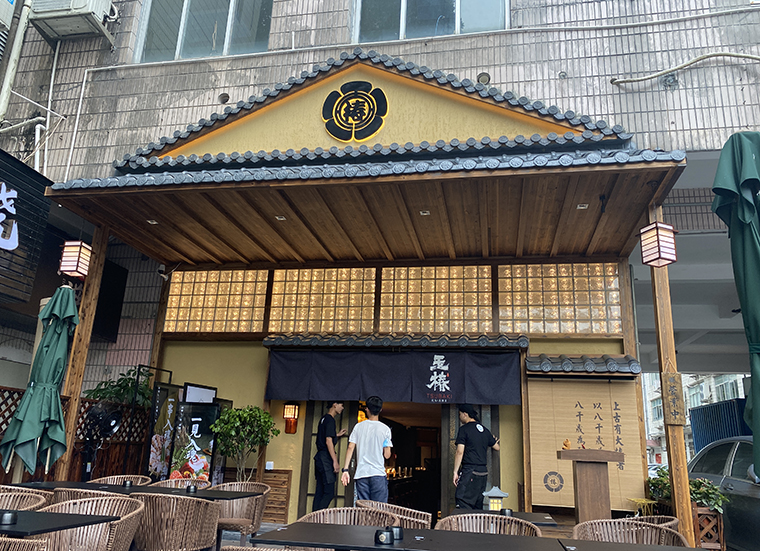 玉椿 燒鳥居酒屋,整體的品牌空間視覺呈現(xiàn)出江戶時(shí)代建筑風(fēng)格,目的就是塑造出這是一家日料很地道,味道很純正,環(huán)境很舒服,消費(fèi)很實(shí)惠的日本料理老牌子。