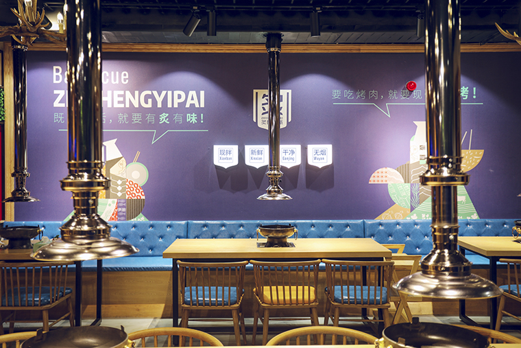 炙成一派作為海口首家現拌烤肉,具有明顯的市場先發優勢,在空間中通過氛圍體驗,品牌訴求,在消費者心目中植入現拌烤肉就是炙成一派,將品牌等同于品類。通過空間的視覺體驗,燈光感受,食物的味道,家具軟裝的觸感體驗,讓顧客能放松心情,享受美食,有情懷,有情調,有趣味。顧客置身其中,心靈宣泄,釋放壓力,最終產生品牌的粘性和較高的復購率。