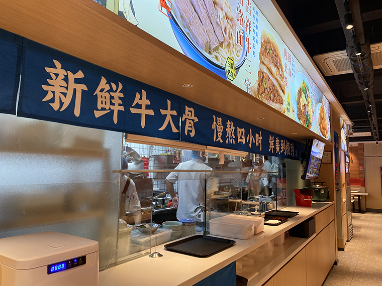 4、品深設(shè)計認為,面館本質(zhì)上與簡餐是一樣的,顧客就是在簡餐和面館之間切換口味而已,所以我們在門店內(nèi)部沒有過多展示品牌的文化。更多是推廣品牌、推廣產(chǎn)品,圖文并茂直接講清楚,饸饹面是一種什么面食?錢三順是怎么來的?錢三順的核心賣點是什么?我們主推哪些產(chǎn)品等等。