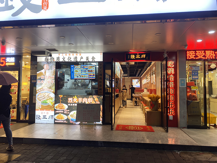 2、門店入門口上方懸掛錢三順匾額,匾額是中國文化中非常鮮明的符號。懸掛匾額讓人聯(lián)系歷史悠久,品牌是老字號,是傳承多年的。